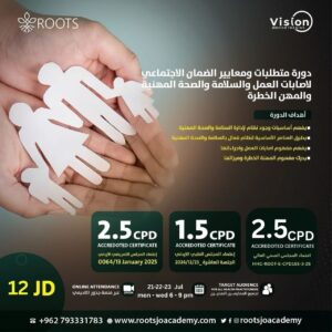 الهدف العام: معالجة العناصر الأساسية لنظام ادارة فعال في السلامة والصحة المهنية وفقا لقانون الضمان الاجتماعي والتعليمات الصادرة بمقتضاه, والقضايا ا...