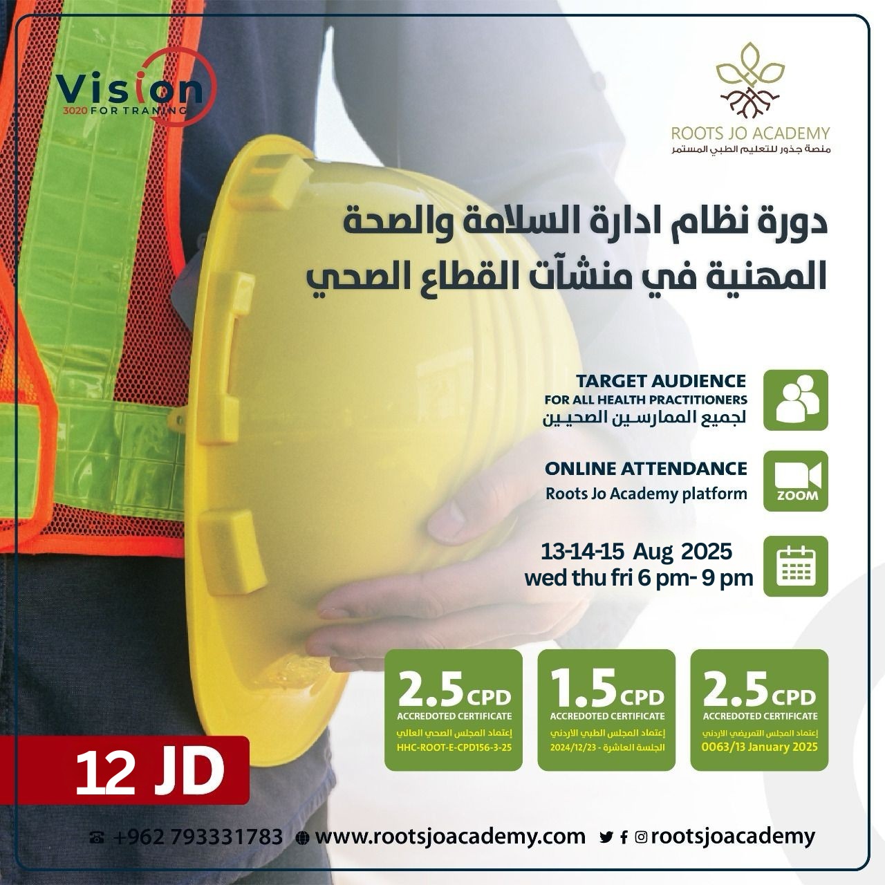 تهدف هذه الدورة إلى تزويد المشاركين بالمعرفة والمهارات اللازمة لفهم وتطبيق نظام إدارة السلامة والصحة المهنية في منشآت القطاع الصحي، وذلك من خلال من...